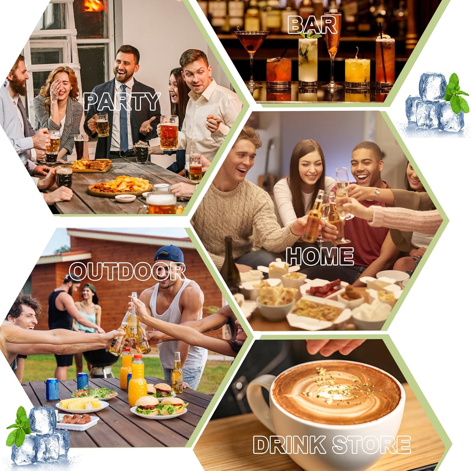 The clear lid serves it keeps the ice and allows for a quick visual check on the ice-making. Meanwhile, the silicone handle offers a comfortable grip for easy portability, making it suitable for use at home, at bars, restaurants, or even outdoors.